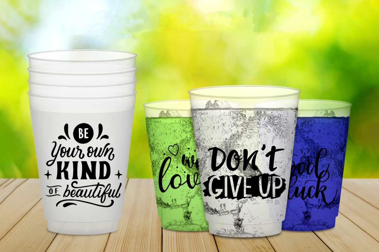 We print on Styrofoam, Frost Flex, PET, Stadium Cups, Paper Cups, and so much more. Whether you’re planning a party, hosting a fundraiser, organizing a charity event, or looking to market your company, our custom printed cups and products will make your brand stand out and your event unforgettable.